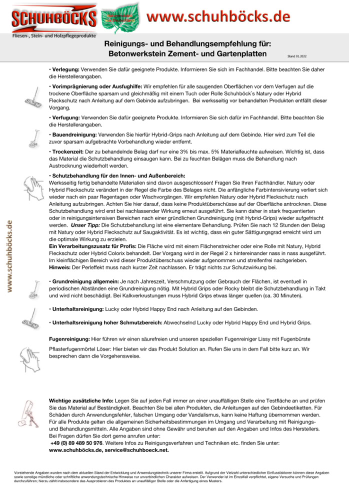 Zementoberflächen, Platten, Pflaster etc.