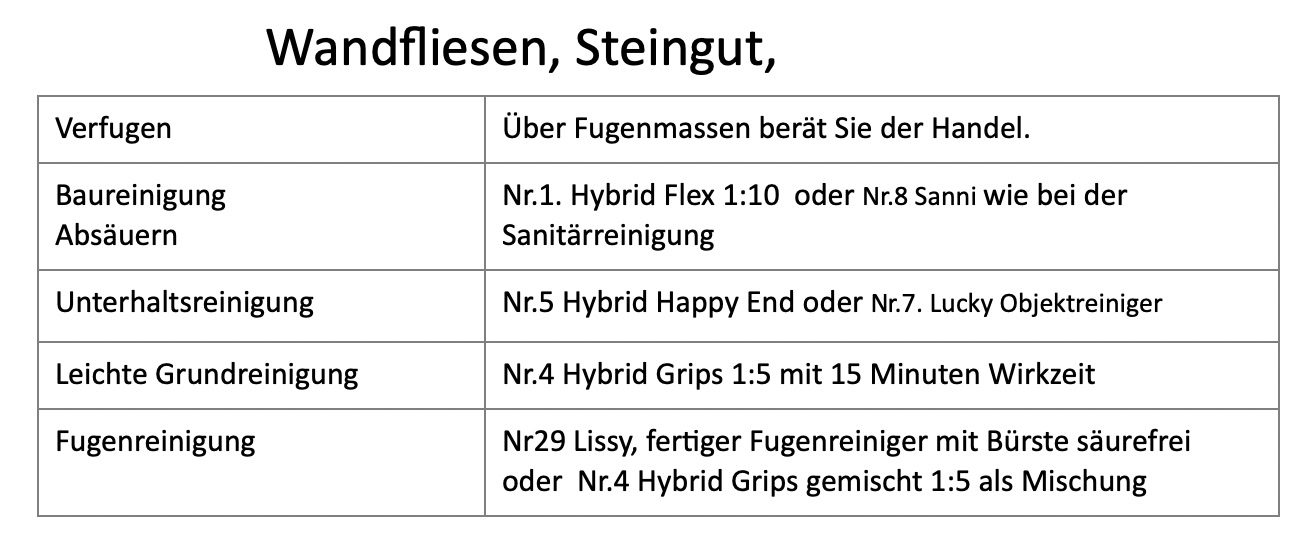 Reinigungs- und Behandlungsempfehlung