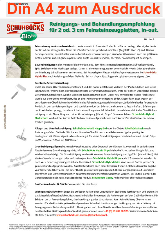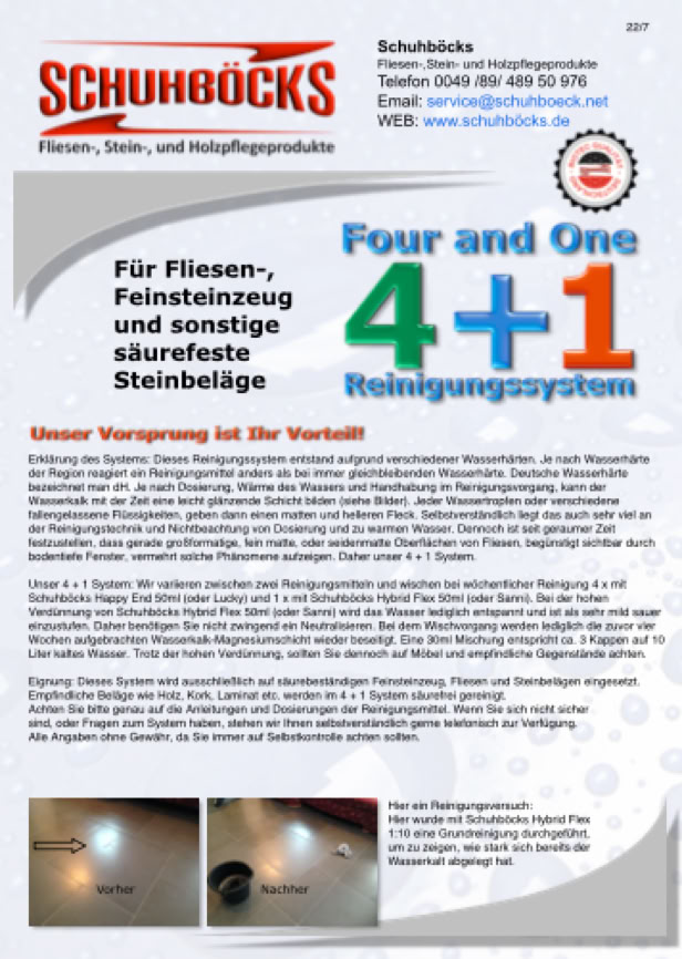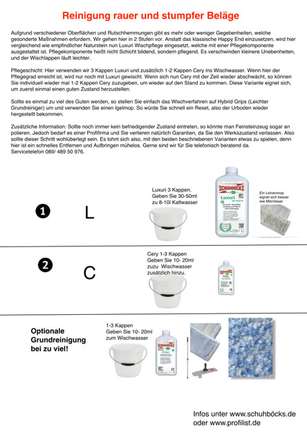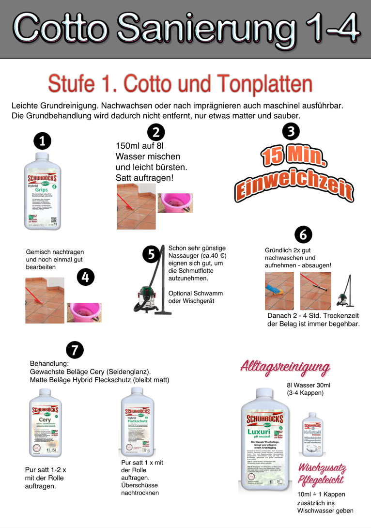 Einfache Bauendreinigung und Grundreinigung, leicht sauer für Fliesen und Feinsteinzeug. Wischverfahren Für Privatanwender gut geeignet.