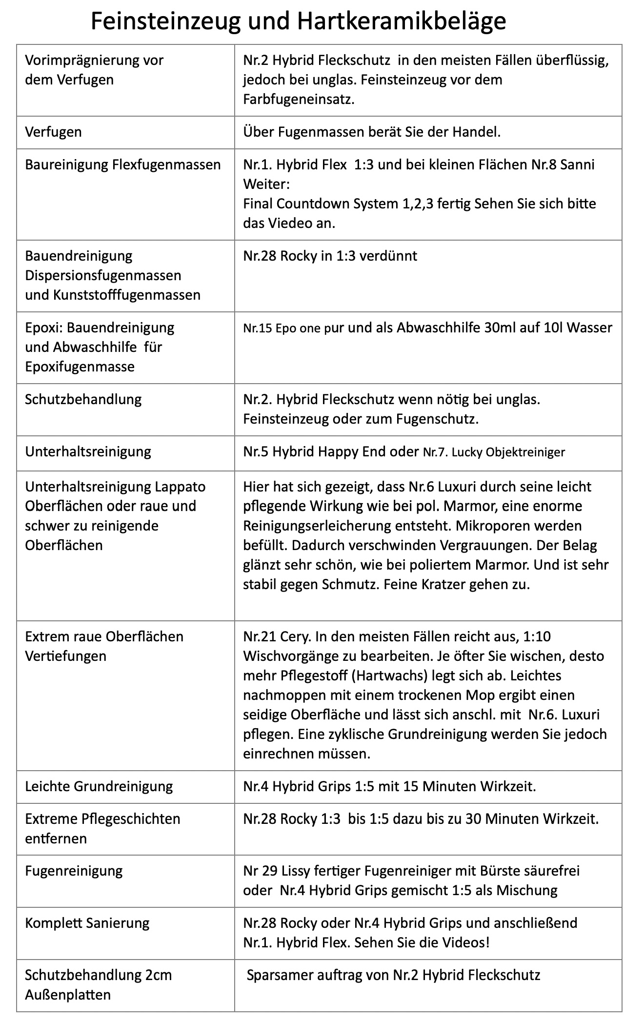 Reinigungs- und Behandlungsempfehlung